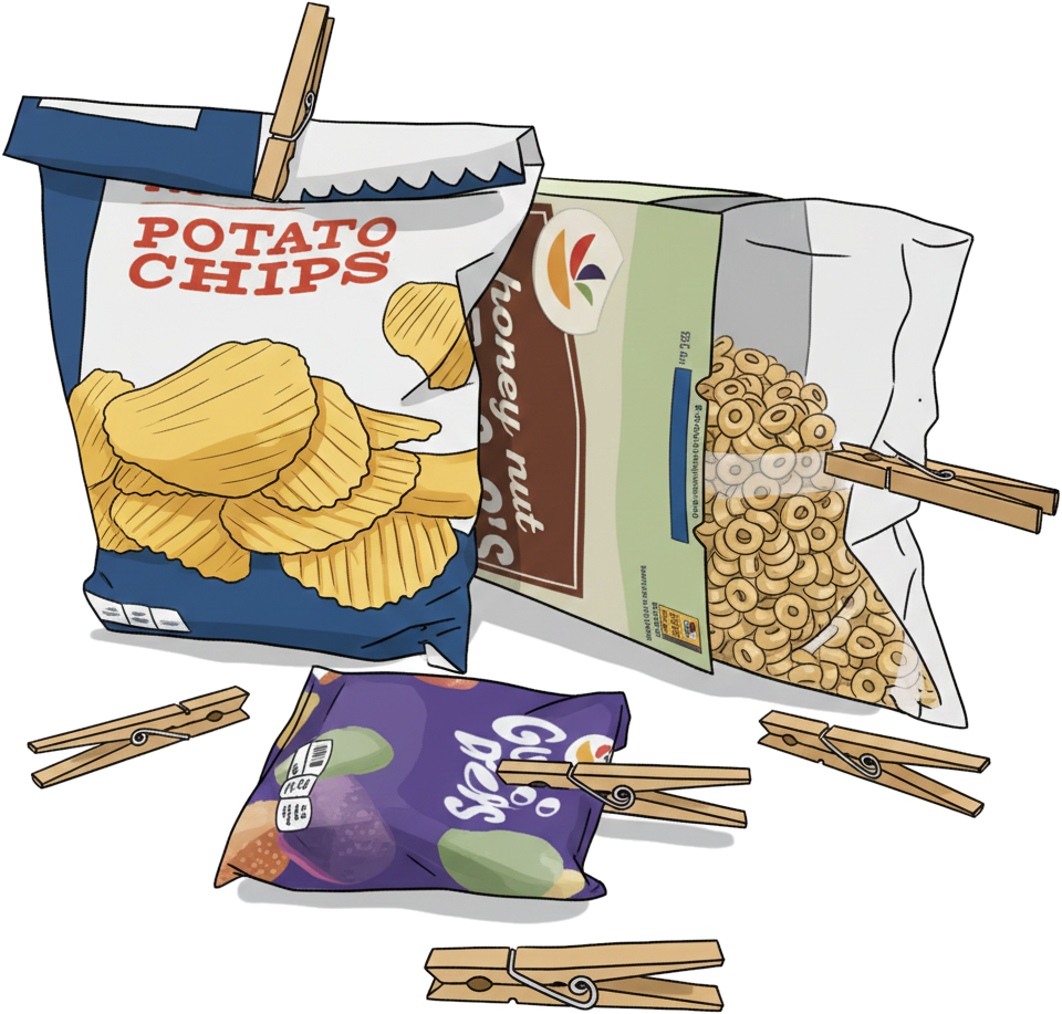Wooden clothespins are handy even if you don’t dry your clothes on a line. You can keep any bag closed, like chips, cereal or candy, for much cheaper than plastic Chip-Clips. At $5 per bag of 50, each one is about a dime.
